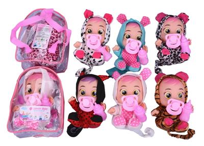 10寸书包搪胶带音乐会流眼泪哭泣娃娃配奶瓶奶嘴五款混装