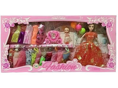 高档大盒11.5寸实身活手随机时尚裙单人芭比 带3寸仔和手推车 带吊裙