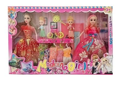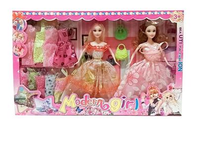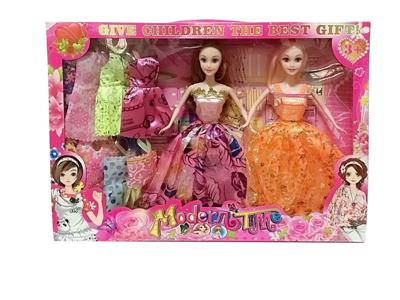 高档大盒11.5寸实身活手随机时尚裙双人芭比 带两个3寸仔和单车配件吊裙