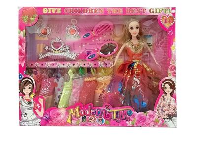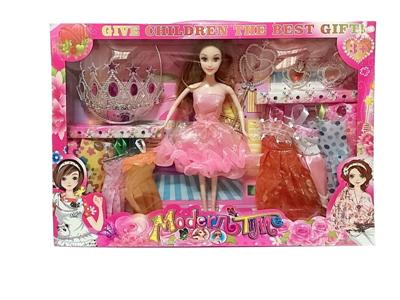 高档大盒11.5寸实身活手随机时尚裙单人芭比 带大皇冠和公主套装配件 带吊裙