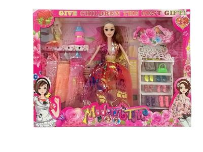 高档大盒11.5寸实身活手随机时尚裙单人芭比 带衣柜和大项链 带吊裙