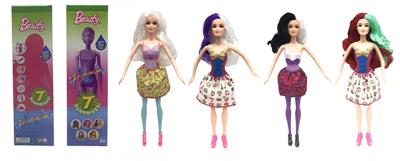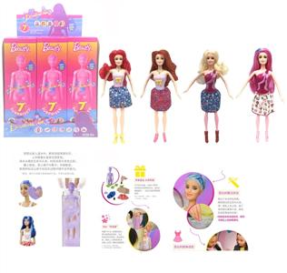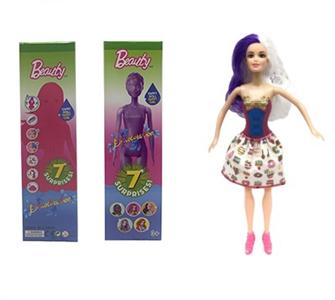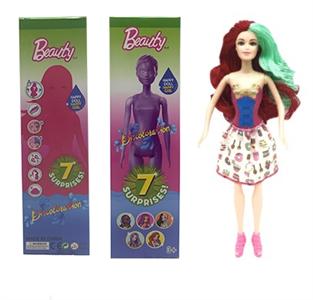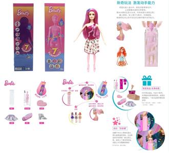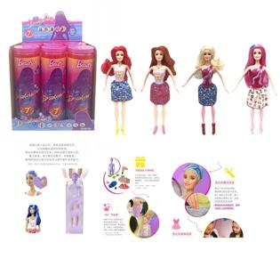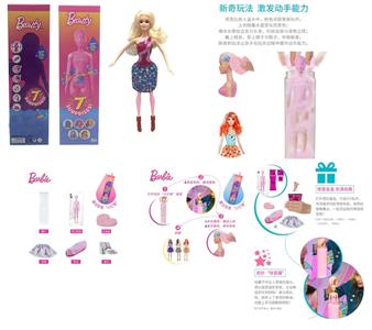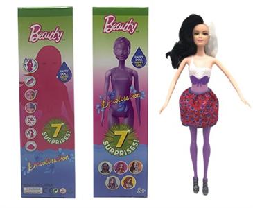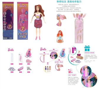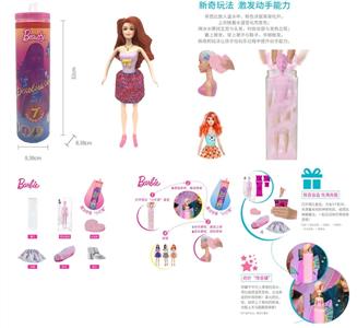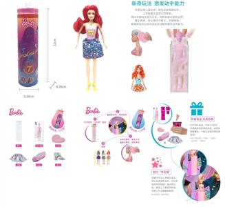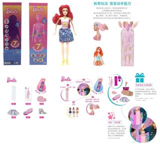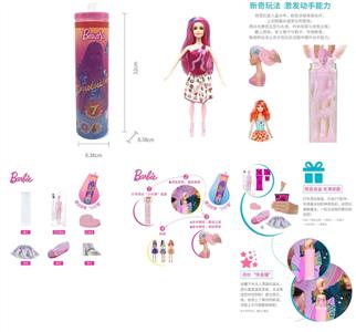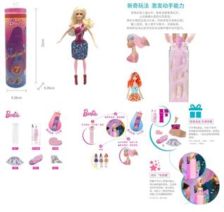 第1代11.5寸实身惊喜变色芭比。带5样不同的惊喜配件,娃娃360度旋转,4款随机混装6PCS