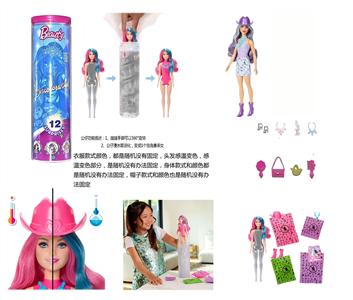 美泰版惊喜水溶泡水系列11.5寸实身COlor Reveal色彩狂欢迪斯科芭比带5样不同的惊喜配件,娃娃360度旋转 4款6PC