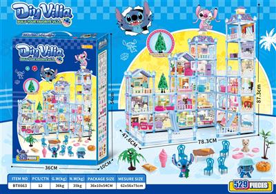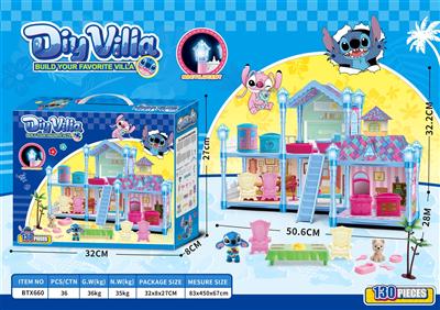 夜光DIY史迪仔过家家小别墅玩具套装(DIY拼装女孩梦想屋豪宅)130PCS