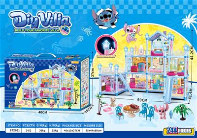 灯光夜光DIY史迪仔过家家大别墅玩具套装(DIY拼装女孩梦想屋豪宅)237PCS