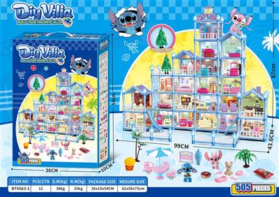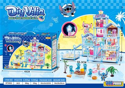 夜光DIY史迪仔过家家小别墅玩具套装(DIY拼装女孩梦想屋豪宅)105PCS