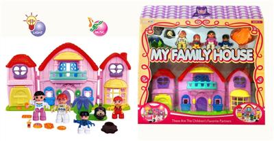 一家四口积木人别墅套装(带灯光音乐包3粒AG13)