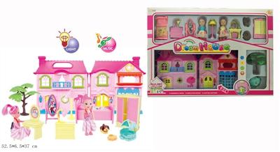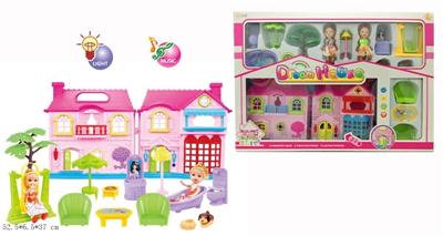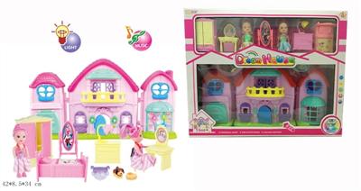 芭比卡通别墅套装 (带灯光音乐/七彩吊灯,包6粒AG13)