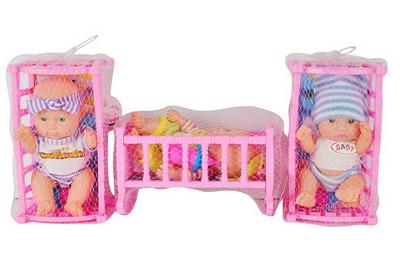 新款精美5.5寸搪胶表情娃配睡床奶瓶3款混装