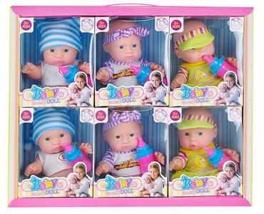 新款精美6寸搪胶表情娃配浴池奶瓶3款混装