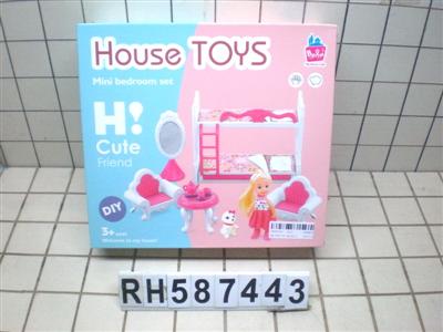 公主卧室双层床套装(配小公仔+小狗)