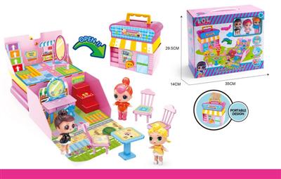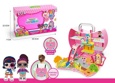 惊喜娃娃灯光音乐别墅场景(配3只带头发公仔)
