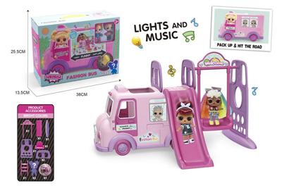 惊喜娃娃灯光音乐乐园车(带两个植发公仔+1颗惊喜球)