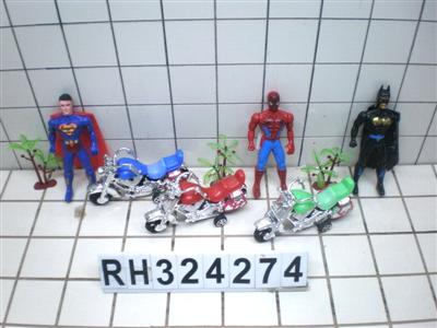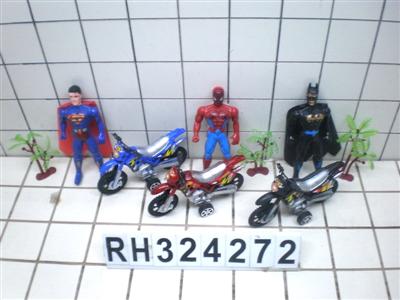 超人+蝙蝠人+蜘蛛人+摩托+树