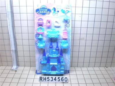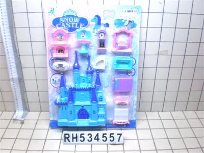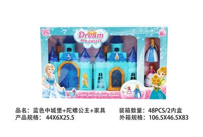 蓝色中城堡带灯光音乐+陀螺公主+猫+家具(包3颗AG13)